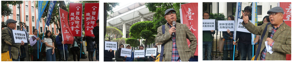 2016年11月19日: 郭應哲理事長代表本工會至教育部前參與「反教育商品化聯盟」主辦的「高教變投機,創轉當博弈--拒絕《高教學店化條例》」記者會