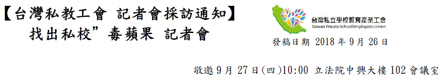 【新聞聯絡人】:台灣私立學校教育產業工會(台灣私教工會)秘書長 諶其騮 0987-997-677