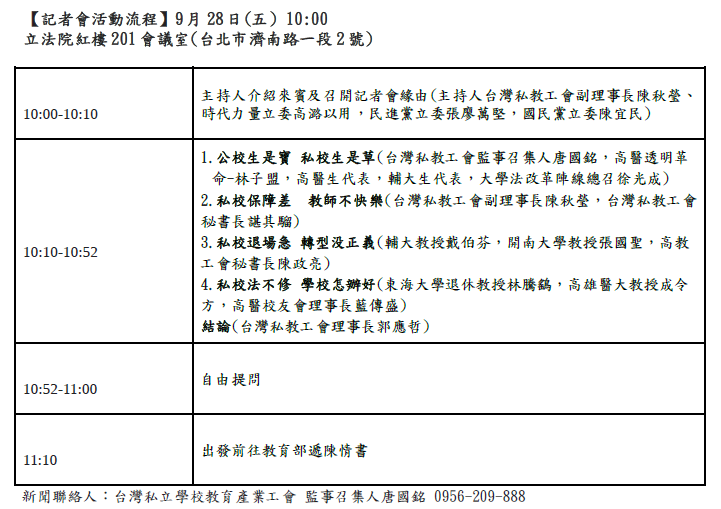 新聞聯絡人:台灣私立學校教育產業工會 監事召集人唐國銘 0956-209-888