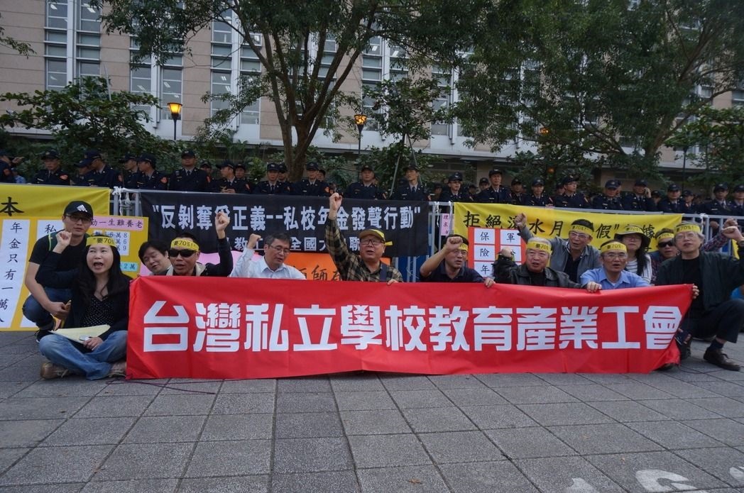 "有別於軍公教、監督年金改革行動聯盟的抗議陣仗,今天有30多名私校代表到場「靜坐」,副理事長陳秋瑩表示,全國有300多所私校,私校代表完全沒有發言機會,還要一起抽籤,真的很不公平。私教工會提出7點訴求,第一層公保年金之年資給付率應由1.3%提高至1.55%,提高私校第二層退撫金提撥率,由原12%提高至18%,維持原制度分攤比例,將私校第二層退撫金年金化、得按月提領。" https://udn.com/news/story/1/2215655